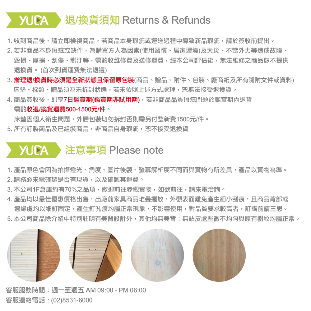 ● 因大型傢俱有組裝、配送的問題,並非一般快速到貨商品,無法指定特定時間送達,司機當天到貨前皆會再與您通知,讓你不用整天在家等貨,以免浪費你的寶貴時間。